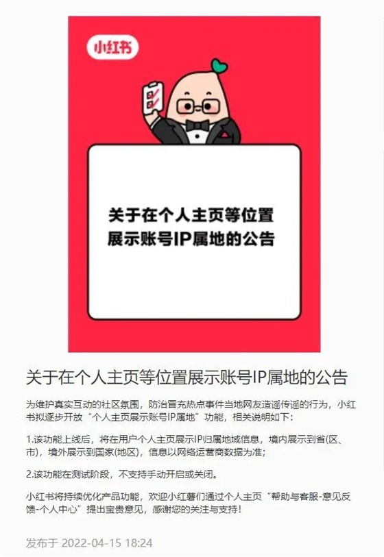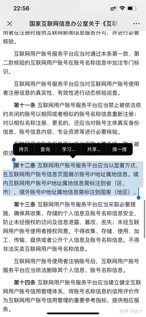 除此之外,国家互联网信息办公室之前也发布了关于《互联网用户账号名称信息管理规定(征求意见稿)》 ,其中有一条规定称“互联网用户账号服务平台应当以显著方式,在互联网用户账号信息页面展示账号IP地址属地信息。境内互联网用户账号IP地址属地信息需标注到省(区、市),境外账号IP地址属地信息需标注到国家(地区)。”