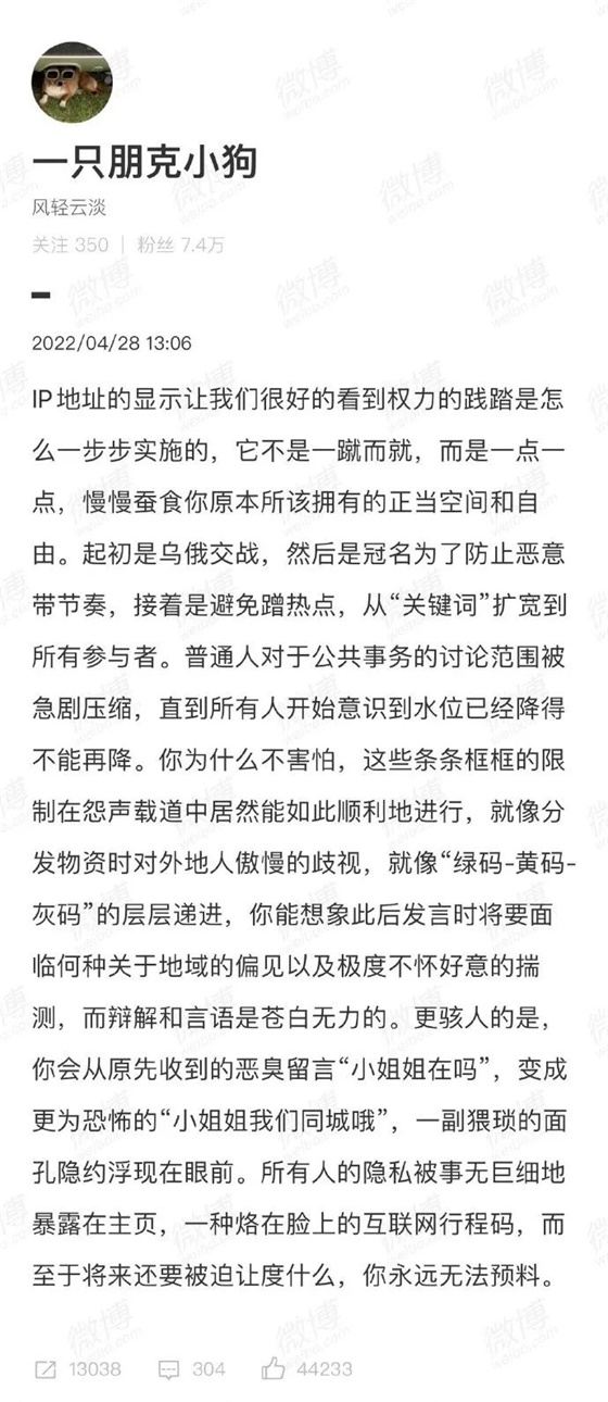 可是让人没想到的是,微博对IP显示的规定又有变动。