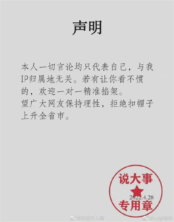 4月28日,新浪@微博管理员 ,正式发布IP属地功能升级公告:即日起,平台全量开放评论展示发评IP属地小尾巴功能,上线“个人主页一级页面展示IP属地”功能。