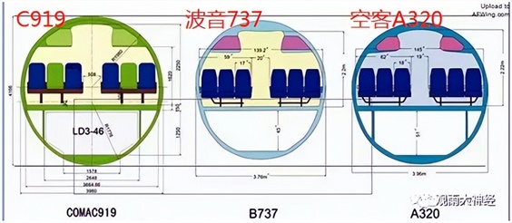 还有:空客A320和C919货仓都按照标准航空集装箱优化,恰好能并列放入两个航空集装箱。而波音737因为设计较老,没有根据后来的标准集装箱优化,只能塞入一个。