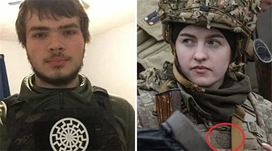 左边是美国白人凶手,他胸口是黑太阳标志。右边是乌克兰士兵,胸口也是黑太阳标志。