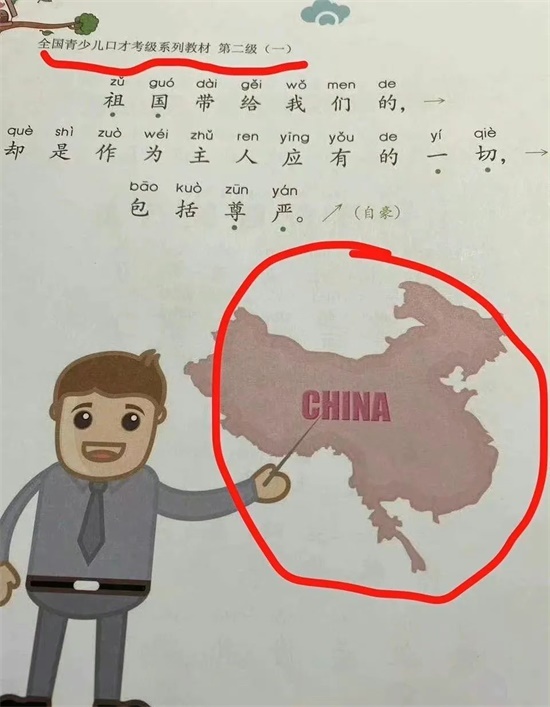 是的,在另外一种教材中,出现了一个比乱画“国旗”更加明目张胆、丧心病狂的事件。