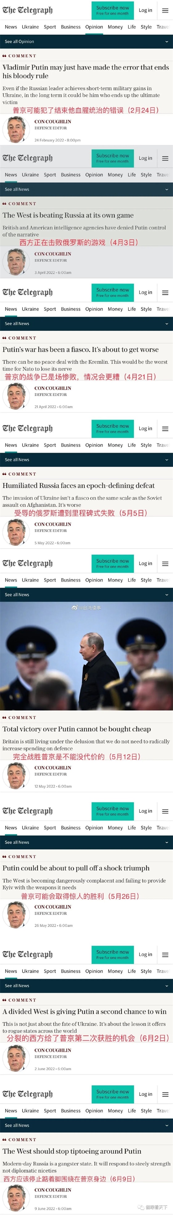 今日,有网友将一张新闻报道对比图发上网,引发了大量的评论。同样一个人,在俄乌战争不同阶段的文章,一起来看看。