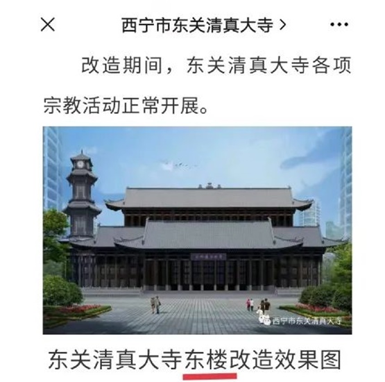 央视在报道关于西宁东关清真大寺的整改成果,把圆顶清真寺拆除,改成了中式建筑,两者外观差距极大。