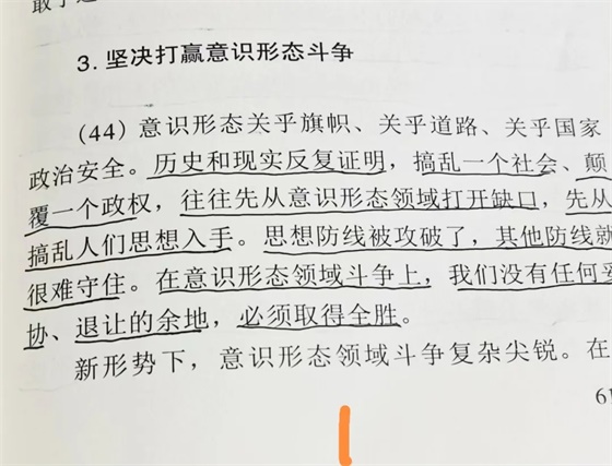 最后,用《总体国家安全观学习纲要》中的“坚决打赢意识形态斗争”来结束本文:意识形态关乎旗帜、关乎道路、关乎国家政治安全。历史和现实反复证明,搞乱一个社会、颠覆一个政权,往往先从意识形态领域打开缺口,先从搞乱人们思想入手。思想防线被攻破了,其他防线就很难守住。在意识形态领域斗争上,我们没有任何妥协、退让的余地,必须取得全胜。