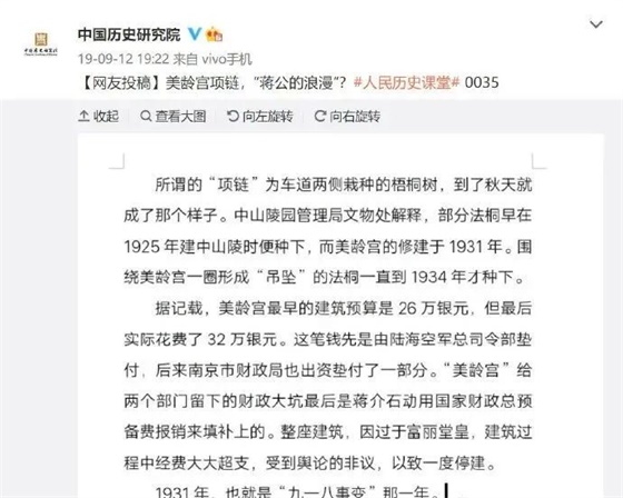 第四、鼓吹美化美龄宫。2019年,当地媒体带头鼓吹、美化美龄宫是“江山为聘”、“蒋公的浪漫”。
