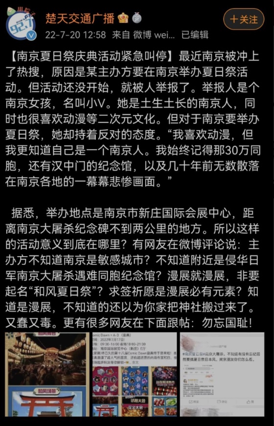 第七:举办为日本军国主义招魂的日本“神社元素”的夏日祭活动,该活动涉及了日本军国主义信仰的相关物件变相呈现等等,且极尽所能地宣传日本元素,且已经举办多年。
