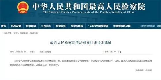 2022年8月17日,最高人民检察院依法对谢计来决定逮捕,接下来,等着他的将是司法审判的流水作业。