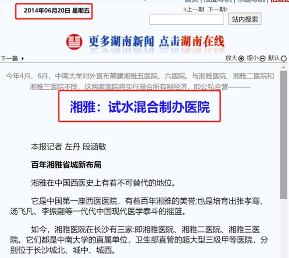 湘雅医院在2014年开始筹办公私合营。但是天下没有只允许医院公私合营,不允许医生公私合营的道理。