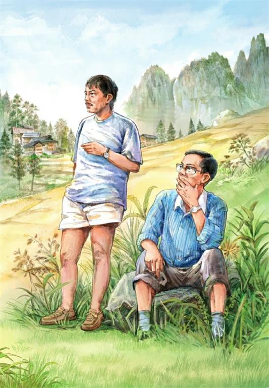 ▲本书插图:十多年选址,这是南仁东、聂跃平和选址队员们再次经历的“社会大学”。不论科学多么尖端,理想多么高远,仍需脚踏大地。