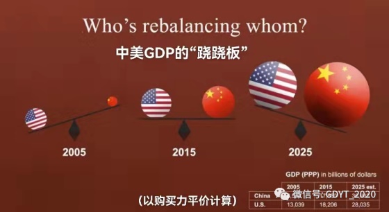 作者认为,如果这只是一场炫耀财富的比赛,美国大可以挑选一个能让它自我感觉良好的衡量标准。但在现实世界中,一个国家的GDP是其综合国力的基础。虽然GDP并不自动转化为经济或军事力量,但如果以史为鉴,GDP占优势的国家在国际事务的影响力往往更大。