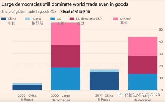 同时,必须注意的是,中国也依赖外国的供应链来提供必需品。中国是世界上最大的食品和能源进口国,它对美国和其他高收入国家的出口在其经济中发挥着核心作用,这些发达经济体在世界贸易中的份额占比比中国大。因此,正如《金融时报》的马丁·沃尔夫(Martin Wolf)所言,如果美国及其七国集团伙伴能够采取一致行动,它们可以坚持制定贸易和金融规则,建立一个中国必须接受的公平竞争环境。例如,如果前几届美国政府加入了跨太平洋伙伴关系和以欧盟为重点的跨大西洋贸易与投资伙伴关系(TTIP,Transatlantic Trade and Investment Partnership),那么美国就会成为一个经济联盟的缔造者,世界上近60%的GDP都会坐在它的跷跷板上,把16%的中国从地上拉起来。很遗憾的是,这个“如果”是很难成为现实的。