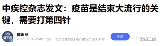 把接种第四针与结束“新冠大流行结束”捆绑,似乎在营造一种既无把握也没有科学依据的接种倾向性意见?文章作者包括疾控中心副主任冯子健、疾控中心免疫规划中心主任尹遵栋,疾控中心高级顾问兰斯·罗德瓦尔德等。
