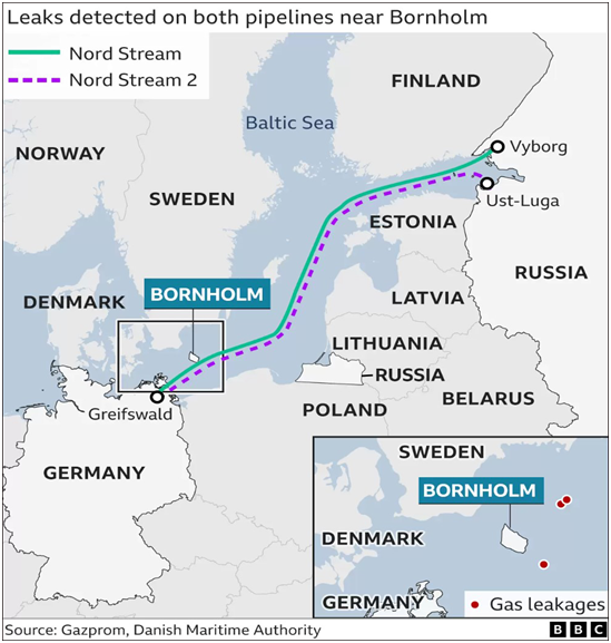 据悉,9月26日,俄罗斯向欧洲送气的“北溪1号”和“北溪2号”管道遭到3处破坏,随后发生了水下爆炸。
