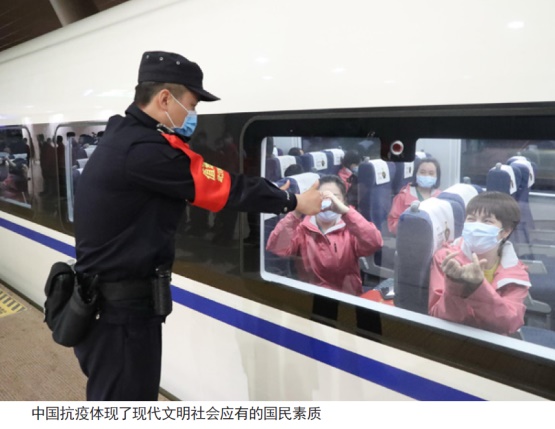 从某种程度上可以说,抗疫是世界各国的制度竞争。新冠肺炎疫情让世界重新认识了中国;它充分体现了中国共产党领导下的社会主义制度的优越性。中国的抗疫实践证明,我们为世界多个国家提供了一条不同于西式现代化的发展道路。