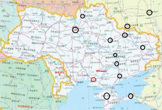 上面的黑圈,是苏德战争时,现在的俄乌战场,发生过重大战役的地方。