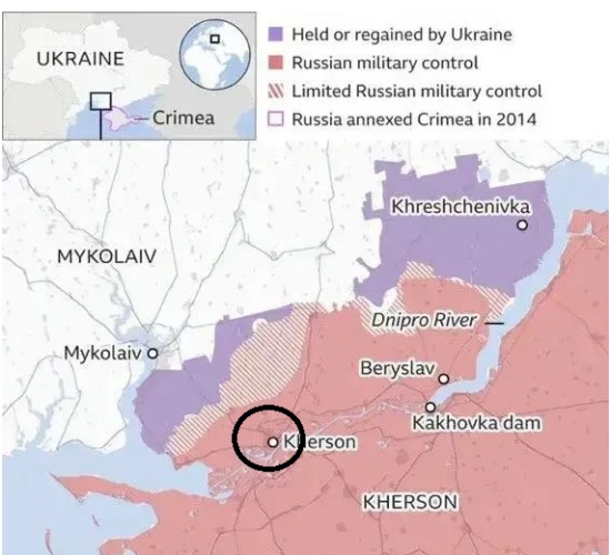 所以,在这四个州公投一结束,才过了一两个星期,俄罗斯在赫尔松那边,就有动作了。