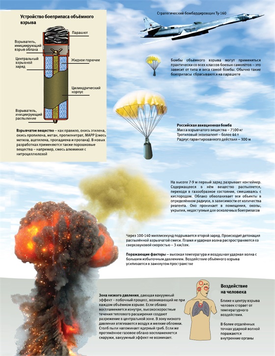 美军2003年造出约10吨重的炸弹之母GBU-43,杀伤半径150米。俄罗斯自然不肯在这个领域落后,针锋相对研发出7吨重的炸弹之父。因其使用纳米材料技术,宣称威力比炸弹之母高出4倍以上,杀伤半径300米。