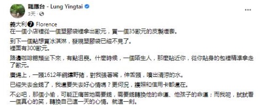 2022年,龙应台又丢钱包了,这一次是在意大利。