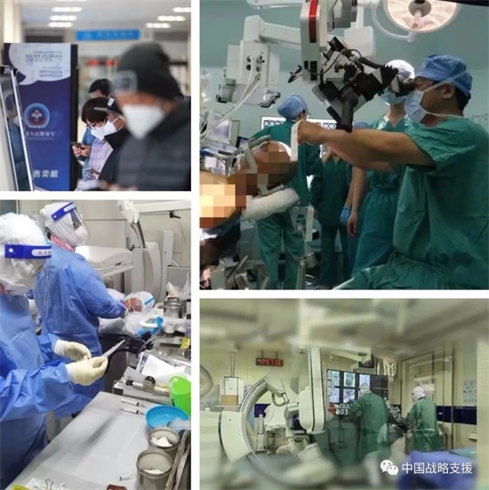 参加全程指挥和协调的神经内科主任杜娟一声令下:“尽快取栓!”神经内科、急诊科、放射诊断科和导管室多头工作同时并进,检测新冠抗原、抽血化验、备皮、导尿、CT定位,多学科快速联动,与疾病赛跑。虽然患者抗原检测是阳性,但危重急症的救治不能耽误。介入治疗团队在严密防护下给患者进行导管血栓抽吸术,使患者堵塞血管完全再通,凝视、肢体力量、语言明显好转。