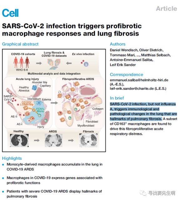 标注部分翻译:SARS-CoV-2感染,而不是甲型流感,会引发肺部的免疫反应和病理变化,这是肺纤维化的标志。