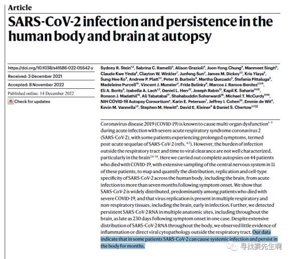 标注部分翻译:我们的数据表明,在某些患者中,SARS-CoV-2可导致全身感染,并在体内持续数月。