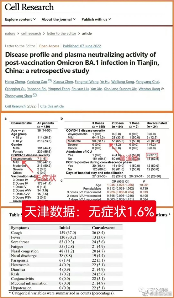 不仅与天津的数据(无症状1.6%)大相径庭,甚至与本地儿童医院的数据(儿童有症状94.9%、其中发烧占96.7%,成人有症状86.4%、其中发烧占73.2%)截然相反,就连同在方舱医院工作过的本地医生,都给出了后台的数据——百分之将近九十都是有症状的!