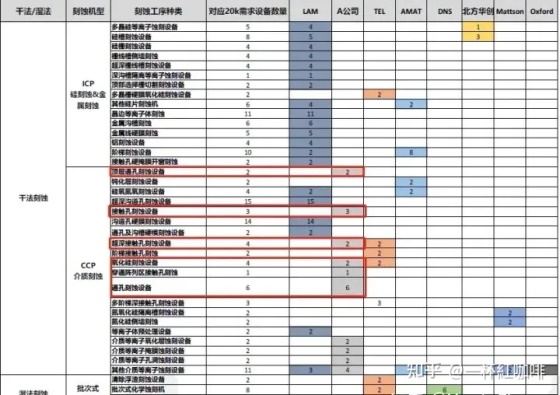 从上图我们可以看出,dry etch 分为icp、ccp,这两小类,每类又分了十多种设备,咱们可以从图中看到中微在某fab的ccp拿下了1/3,但在icp则全军覆没。