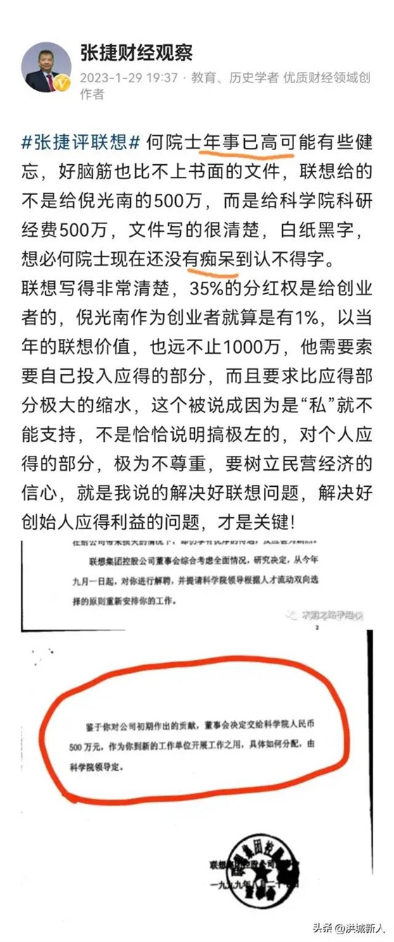联想没有给倪光南500万!500万是给计算所的。为什么要给计算所钱?因为联想是计算所的企业,交钱理所应当!