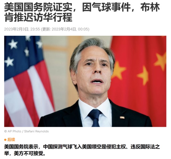 这事儿还影响到了外交事务,虽然中美两国本来也没确认布林肯访华行程,但布林肯单方面宣布,因为中国流浪气球事件,他不来了。