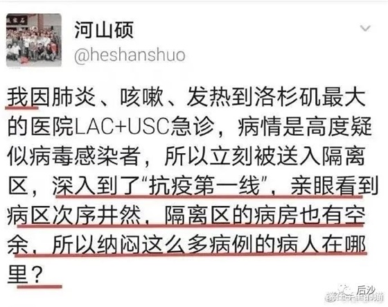 他为什么看不到其它病人?因为洛杉矶医院的ICU早已超负荷运转。