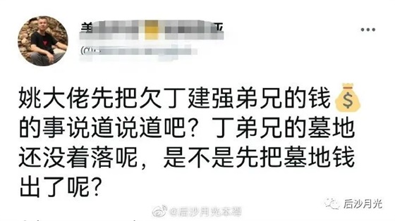现在,他有一位道友实在看不去,发推为死鬼公开催债,要一个姓姚的还钱,让他下葬。