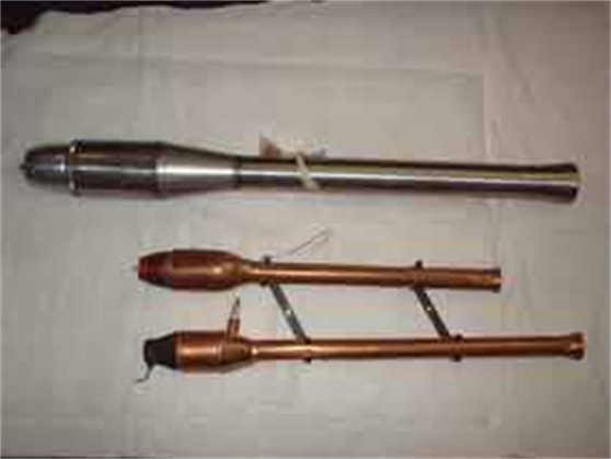 这是一些自制的相当简单的冲压发动机,这些冲压发动机叫做脉冲式冲压发动机,有一个很大的特点就是在发动机后部分带有一个长长的管子。其实这也是冲压发动机燃烧室的一部分,冲压发动机将燃料和空气注入到燃烧室内,当燃料被点燃后会产生爆震,爆震波的会迅速的在管道内扩张将整个管道内的燃料和空气混合物点燃。如果管子过短就有两个弊端,第一是总会有一部分空气和燃料的混合物没有燃烧充分造成燃料和推力两方面的浪费,第二则是燃气没有充分膨胀从喷管中喷出后还有大量的内能没有被利用。