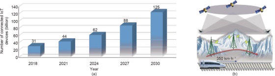 图1. (a)IoT设备数量的快速增长趋势;(b)新兴的HSR网络场景。HSR:高速铁路。