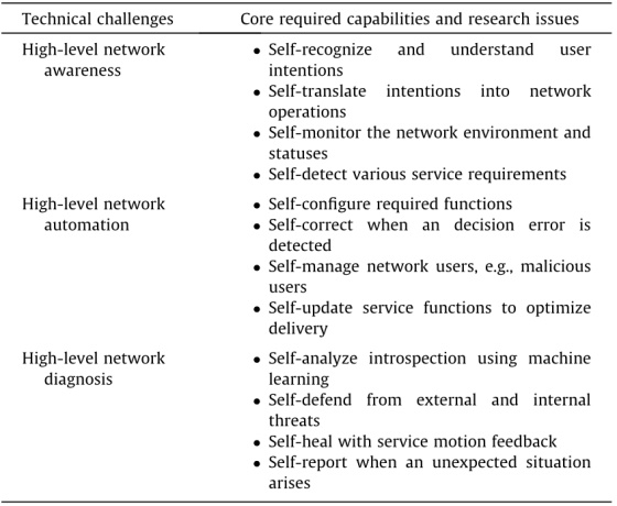 (1)高级网络感知:智能网络应能理解用户的意图,自动将其转化为网络操作。智能网络能够不断地自动监控网络状态、运行状况和服务需求。