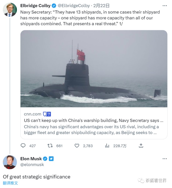Twitter老板马斯克,在下面跟帖:具有重大战略意义。