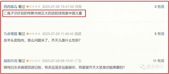 很多网友在质疑《超级英雄美猴王:齐天儿》是怎么过审并上映的,并有很多网友向相关部门举报了该片,而且从该片拉胯的票房成绩来看,说明绝大部分观众的三观是很正的,这样的电影,在内娱注定没有市场和生存空间。