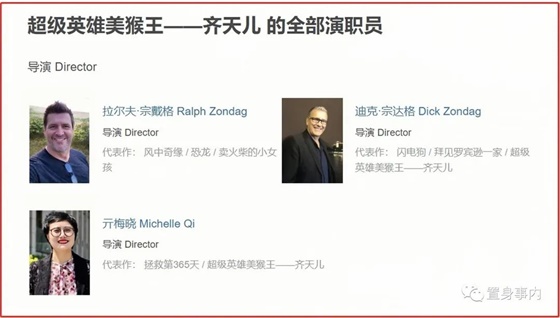导演有三位,分别是两个外国人——拉尔夫·宗戴格(Ralph Zondag),迪克·宗达格(Dick Zondag),和一位长着东方人面孔但国籍不明的亓(qi)梅晓。