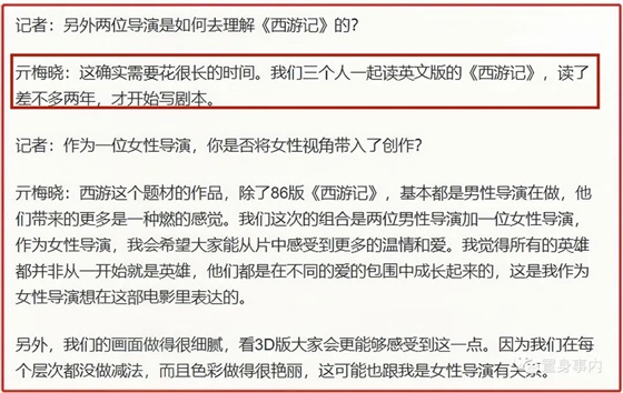 自称在英国学了8年电影制作的亓梅晓还称,他和另外两个外国导演研读了两年的英文版《西游记》后,才开始写剧本。