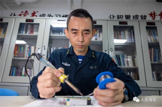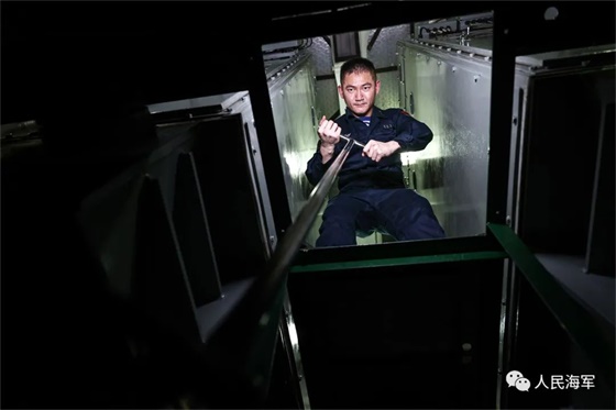 舱底下,“00后小将”蒋彧轩正在紧固螺丝