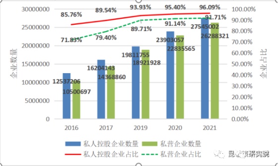 一个最基本的事实是,中国并不缺乏民企。据权威人士说,在中国,“民企贡献了50%以上的税收,60%以上的GDP,70%以上的技术创新成果,80%以上的城镇劳动就业,以及90%以上的企业数量”。简称“民营企业五、六、七、八、九”。相应地,国有企业则是“一、二、三、四、五”。说明中国并不存在“缺民企”的问题,相反,按照宪法坚持公有制主体地位的要求,中国严重缺乏“国企”。
