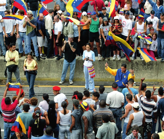 在委内瑞拉首都加拉加斯,委内瑞拉反对派与支持派在公路上对峙(2002年12月16日摄)摄影 / 本刊