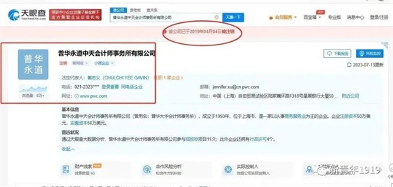 3.让我震惊的是,该公司已经于2019年4月4日注销了——是的,你没听错,普华永道向@腾讯公司 投诉我侵犯商誉,使用的证件是已经注销了4年多的公司的,而且@腾讯公司 还审核通过了,删除了我对普华永道的质疑文章。