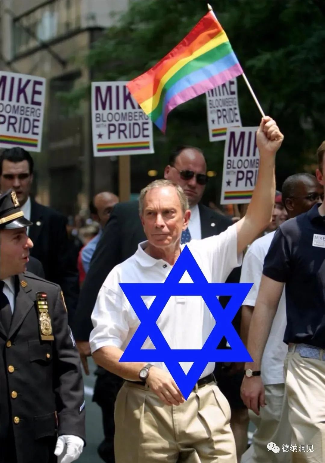 身价600亿美元的犹太大亨,之前曾竞选过总统的布隆伯格Michael Bloomberg,也以支持LGBT著称,曾亲自参加LGBT游行,并高举彩虹旗。政治倾向是民主党白左。