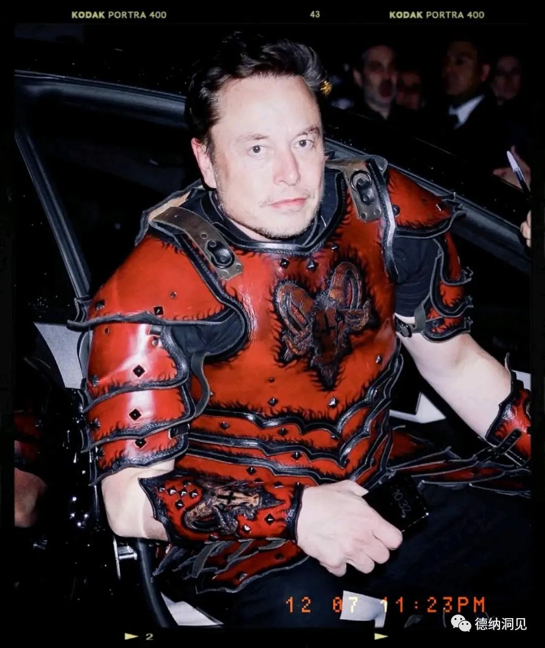【马斯克身穿有着光明会羊角崇拜图腾标志的钢铁侠服装】