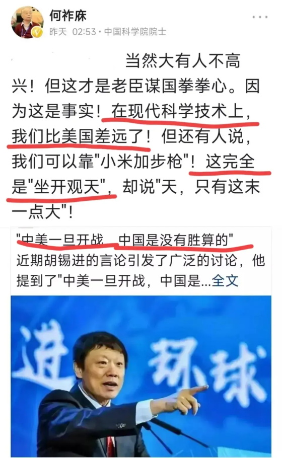 我只是希望何院士发表言论时,多点稳重,多点严谨。每个人都有言论自由,但言论还是要实事求是,起码要对得起自己认证的身份,对得起自己这个年龄,不要让人觉得是年纪大了,脑子迷糊。