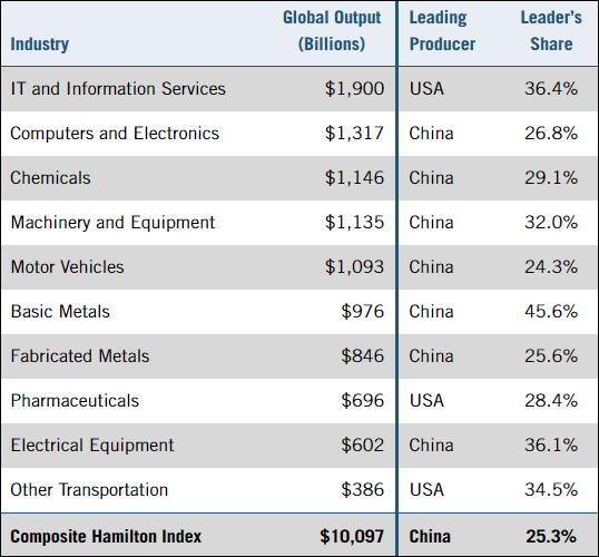 报告认为美国为了赶上中国经济中先进产业的份额,美国的产出必须扩大1.5万亿美元,即69%,这需要在除IT和信息技术服务以外的所有产业的产出翻一番才行。