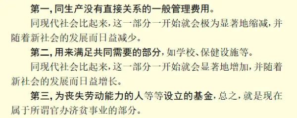 马克思说,在扣除这些部分以后,在分配以前,还有扣除: