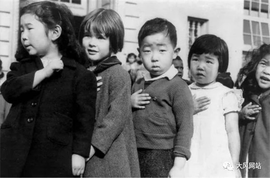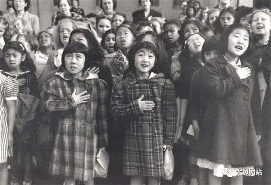在集中营里,日裔美国公民们不分老幼,每天升美国旗唱国歌,宣誓效忠美国。