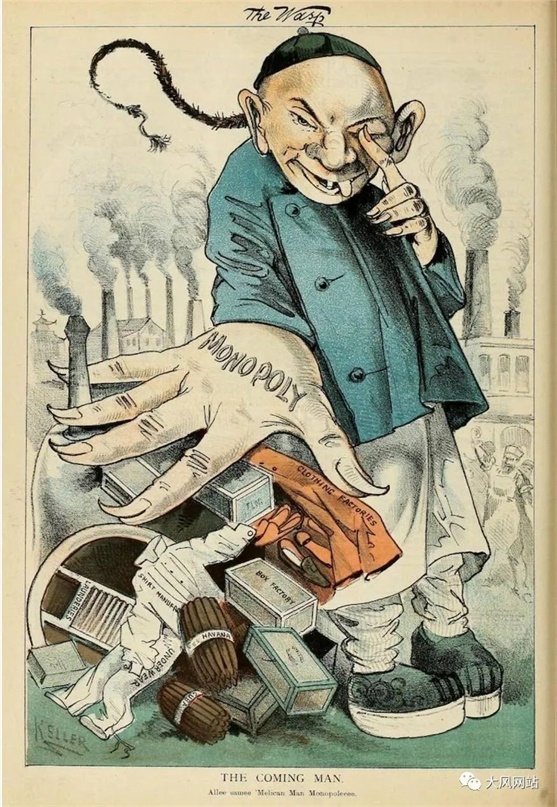 1881年,美国媒体描述的华人就是“黄祸”,是贼眉鼠眼梳着小辫子的奸商,要垄断美国从工厂到洗衣房到贸易到银行一切,就是抢走了美国白人工作的苦力。